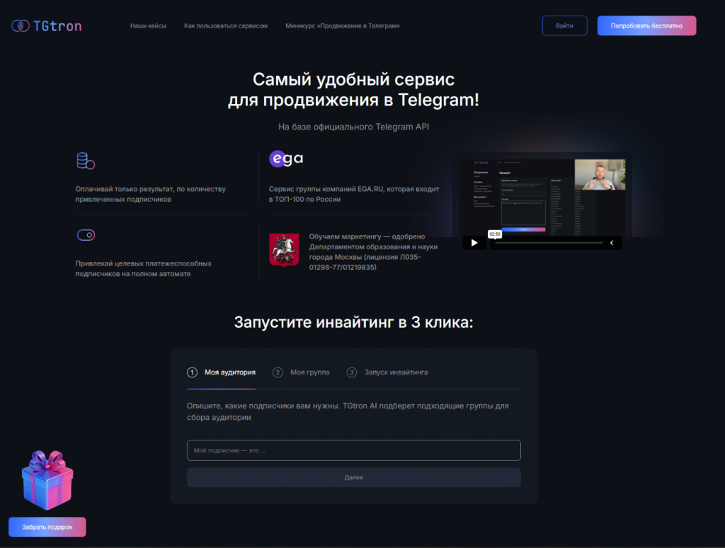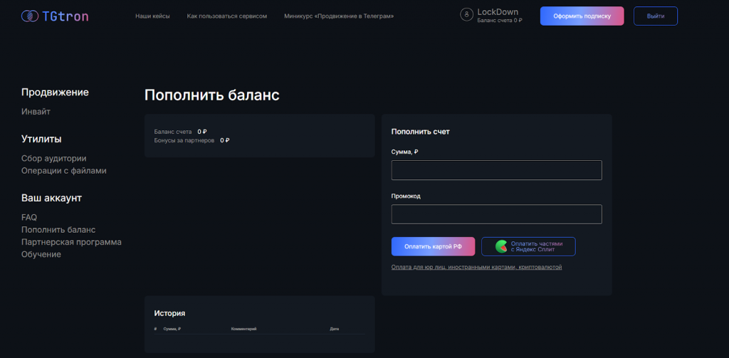 - Зарегистрируйтесь в TGtron и оплатите 2499 рублей.