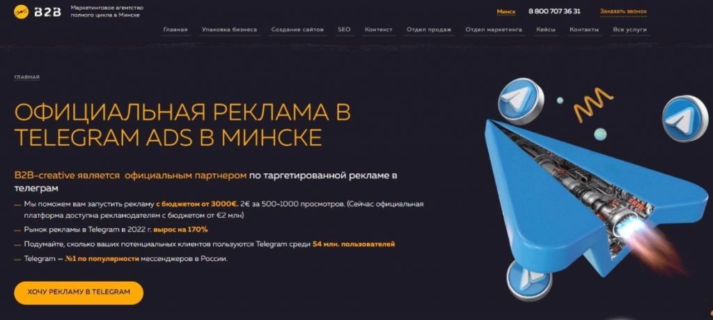 - Агентство рекламы в телеграмм (в рамках больших кампаний)