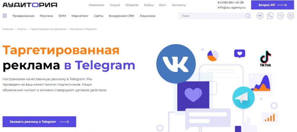 Аудитория — цифровое агентство с опытом более 10 лет, специализирующееся на комплексном продвижении бизнесов в интернете, включая эффективную работу с Telegram. Агентство помогает привлекать целевую аудиторию, повышать вовлеченность и автоматизировать коммуникацию.